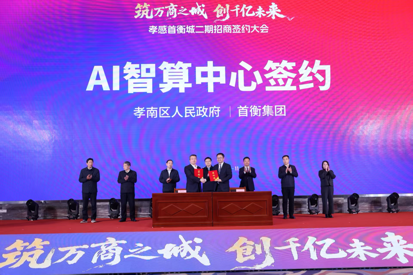 11月28日,在孝感市委、市政府的总体协调和推动下,孝感首横城二期签约大会召开,“打造千企之城,创千亿未来”。孝感市委副书记、市长林忠林出席活动并讲话。市、区两级主要领导组团出席会议。政企联手,按下华中农产品商贸港升级改造的“加速键”。近800名政府、企业、国际、金融、行业代表齐聚现场,共同见证AI智能计算中心启动及五个重点板块签约。