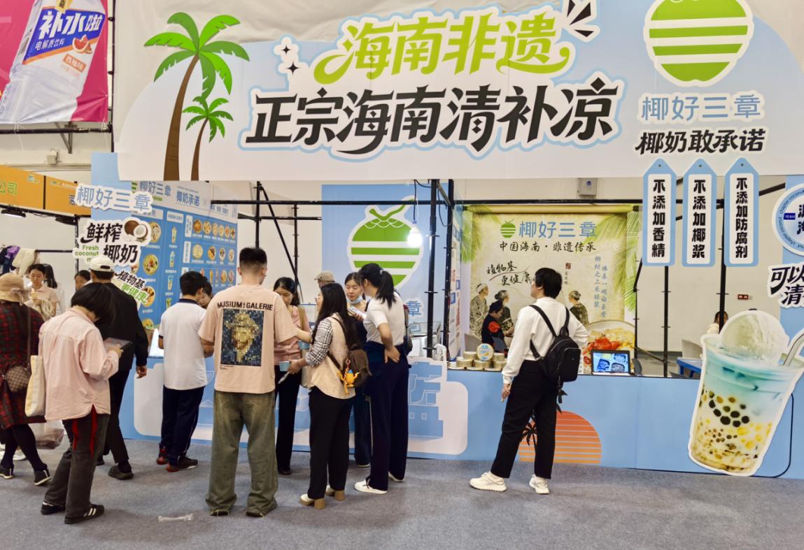 传统茶点多以碗盛装,消费场景相对有限。 “椰豪三章”此时推出的主打产品是清爽清凉的椰泥和海蓝。在秉承海南传统工艺核心的基础上,创新地采用了杯子设计。既充分保留了传统风味的清爽爽口,又实现了健康、便携、四季皆宜的现代升级。这种传统美食摆脱了堂食的限制,成为一种可以随身携带、随时享用的特色饮品,极大地拓展了消费场景和市场空间。“作为土生土长的海南人,我最初的愿望就是保护传统工艺,创造绿色健康、真正清凉的产品。”品牌创始人蔡星雪表示,“椰子之善三章”始终以健康为根本,巧妙传承非物质文化遗产制作方法。不添加香精、椰奶、防腐剂,采用纯正的原料和工艺,呈现海南清凉产品的正宗味道。在他看来,品牌的发展不仅仅是一门生意,更是对海南传统饮食文化的传承和发展。他希望能够帮助清补良打出海南文化遗产名片。